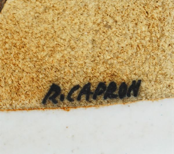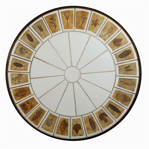 70x115 cm.tavolo mod. Herbage in legno e gres smaltato, firmato