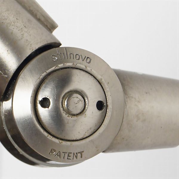 17x9,5 cm.coppia di lampade da parete orientabili in metallo cromato, satinato e verniciato, marchio del produttore impresso, etichette originali, lievi difetti
