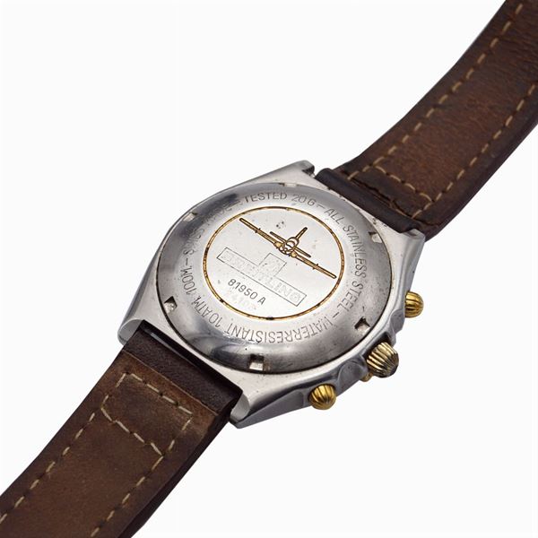 in acciaio e oro giallo, cassa tonda 40 mm. ref. 81950A, quadrante nero tricompax con tre quadranti ausiliari e indici dorati, datario ore 3, ghiera girevole con scala  tachimetrica, vetro zaffiro, movimento meccanico a carica automatica Eta 7750, cinturino in pelle con fibbia in acciaio, cassa, quadrante e movimento firmati