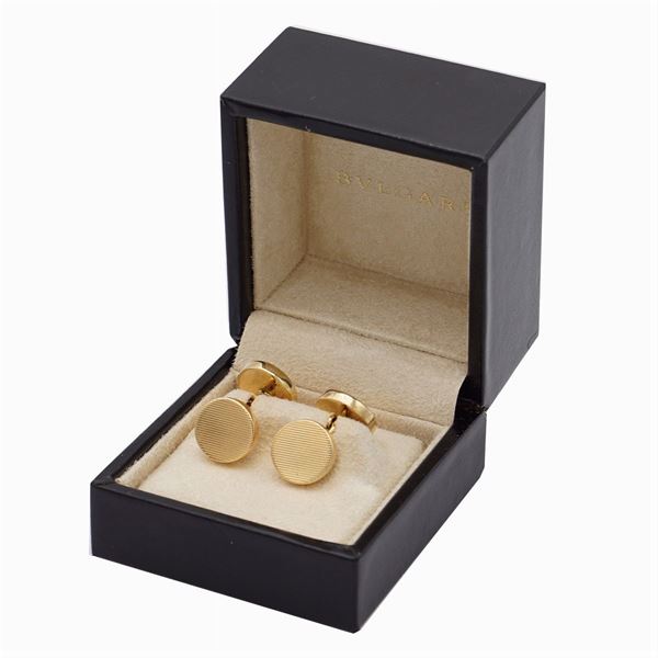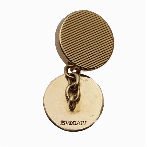 Bulgari, gemelli tondi in oro giallo rigato 18kt