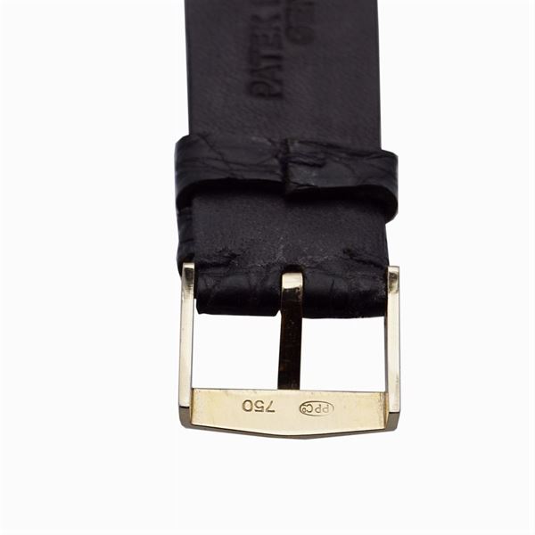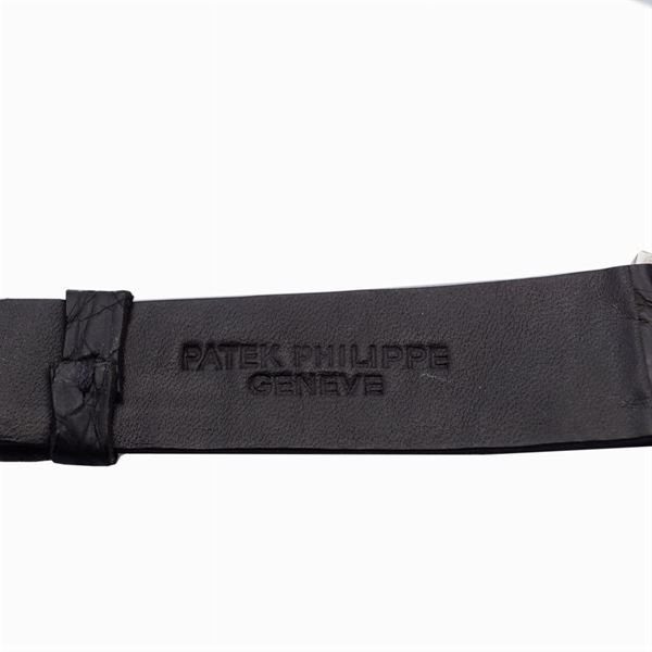 in oro bianco 18kt, cassa ovale 34x29 mm. ref. 3745/5 - 543103,  quadrante sunburst blu con indici e ghiera con diamanti taglio brillante ct 1 circa, vetro zaffiro, movimento meccanico a carica manuale, calibro Patek Philippe 215, serie n. 1334516, cinturino con fibbia originale in pelle e oro bianco 18kt, cassa, quadrante e movimento firmati