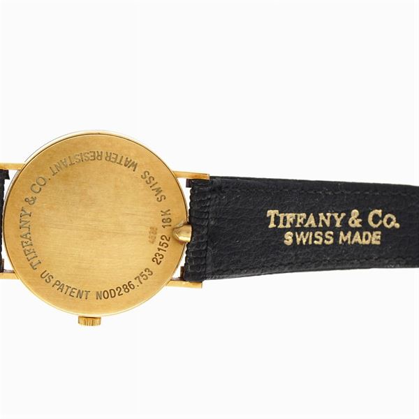 cassa tonda 31 mm. ref NOD 286.753 - 23152, quadrante dorato senza numeri, ghiera con numeri romani, vetro zaffiro, movimento al quarzo Eta 25603,  cinturino in pelle con fibbia in metallo dorato, cassa, quadrante e movimento firmati