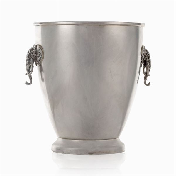 24x20,5 cm.orafo Dabbene, Milano, corpo liscio con manici raffiguranti teste di elefante, firmato, peso 1265 gr.