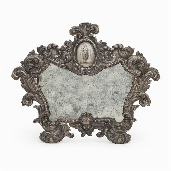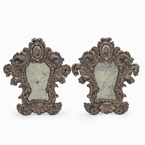 32x42 cm.orafo Carlo Modesti, sbalzate e cesellate con ricche volute vegetali e teste, specchi non pertinenti