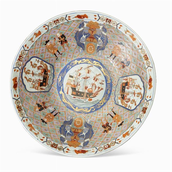 bacile 16x81 cm. - tavolino 53x85 cm.montato a tavolino su una base in ferro battuto dorato, piano in vetro circolare