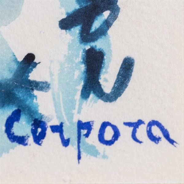 50x35 cm."Senza titolo", acquerello su carta, firmato in basso a destra, entro cornice