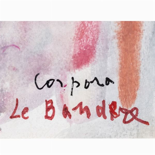 50x35 cm."Le bandiere", acquerello su carta, firmato e titolato in basso a destra, entro cornice