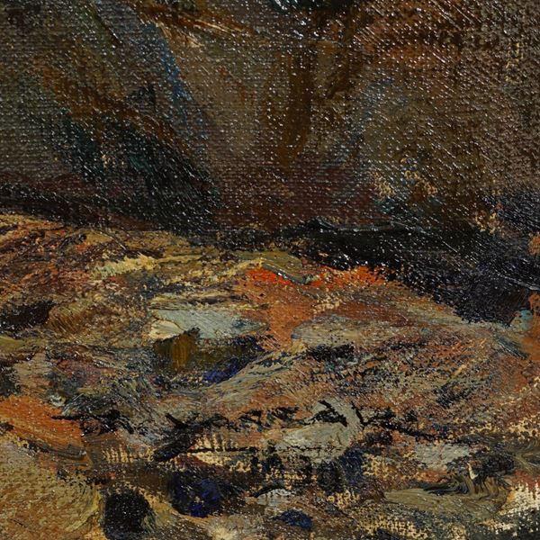 "Diga d'Aveto", 1930, olio su tela, firmato e datato in basso a destra, entro cornice