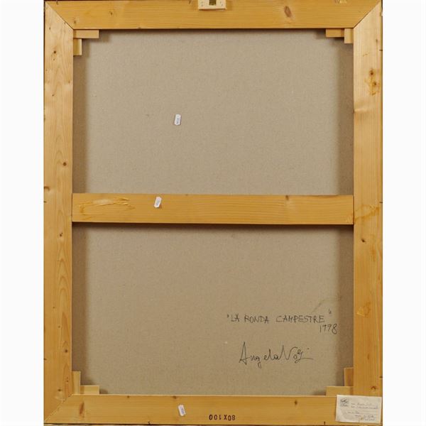 80x100 cm."La ronda campestre", 1998, olio su tela, firmato, datato e titolato sul retro, entro cornice