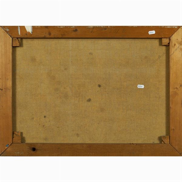 "Barche a Fregene", olio su tela, firmato in basso a sinistra, entro cornice