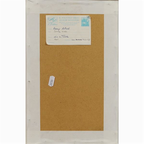 "Upstairs", 2001, olio su tavola, firmato in basso a destra, entro cornice