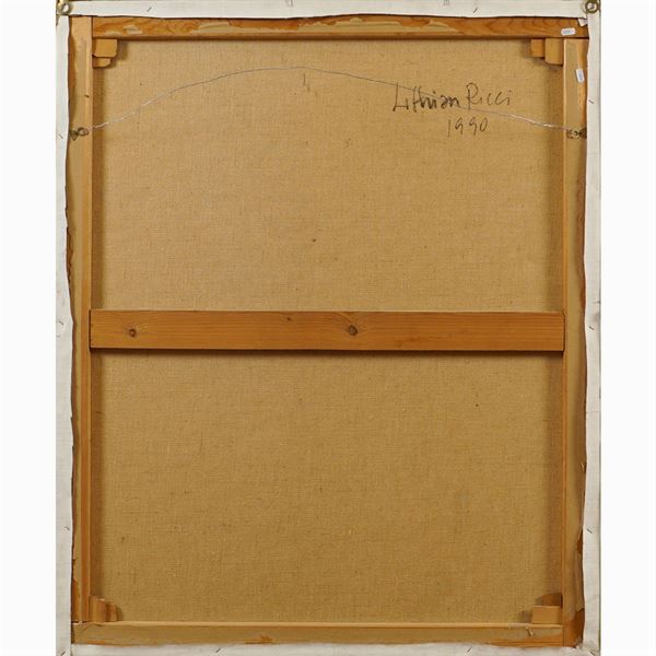 "Senza titolo", 1990, olio su tela, firmato e datato sul retro, entro cornice