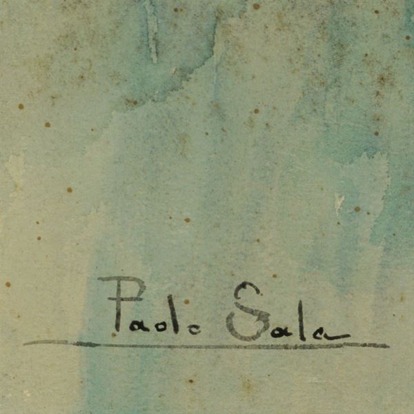 "Scorcio di piazza", acquerello, firmato in basso a sinistra, entro cornice