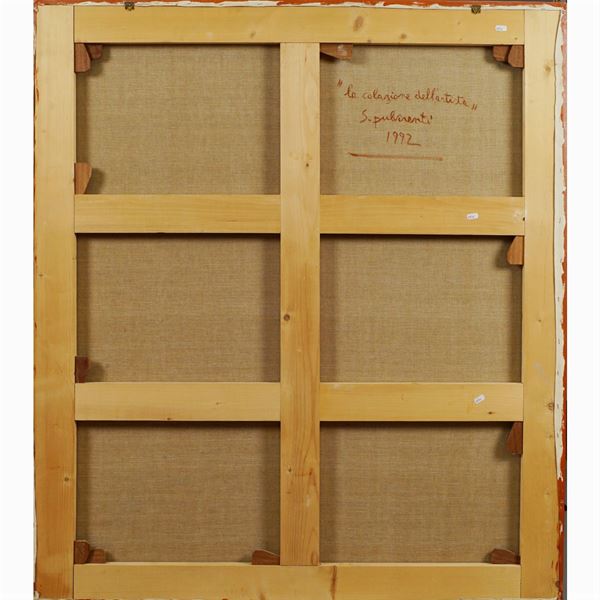 "La colazione dell'artista", 1992, olio su tela, firmato, datato e titolato sul retro