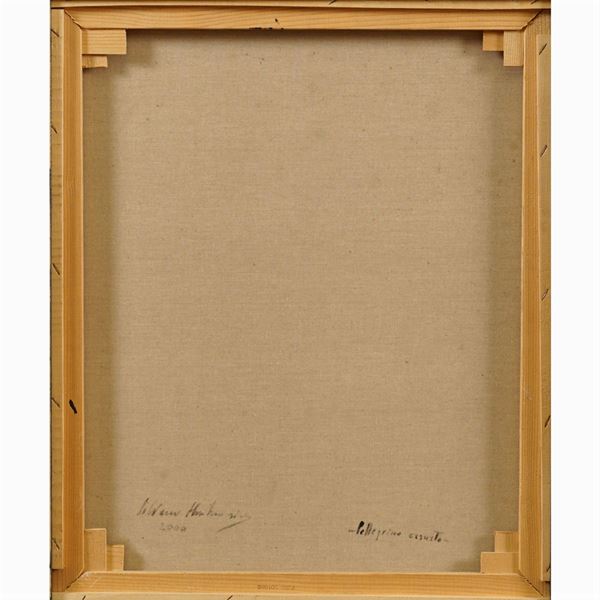 60x50 cm."Il pellegrino esausto", 2000, olio su tela, firmato, datato e titolato sul retro, entro cornice