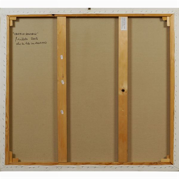 "Obiettivo sensibile", 2003, olio su tela, firmato, datato e titolato sul retro