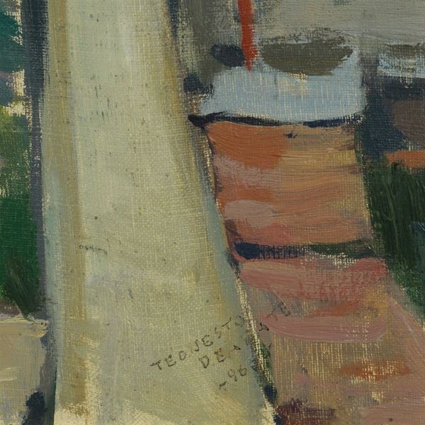 70x50 cm."Veduta del Po a San Mauro torinese", olio su tela, firmato in basso a destra, entro cornice