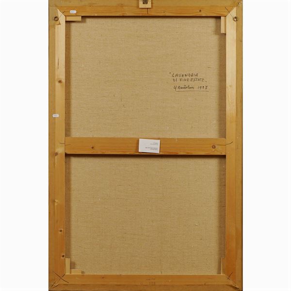 120x80 cm."Lavandaia di fine estate", 1997, olio su tela, firmato, datato e titolato sul retro, entro cornice