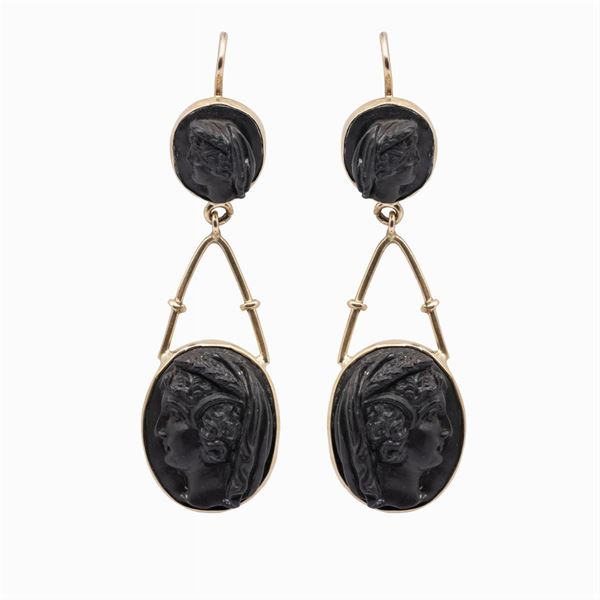 Antica parure in oro giallo 12kt con cammei in pietra lavica