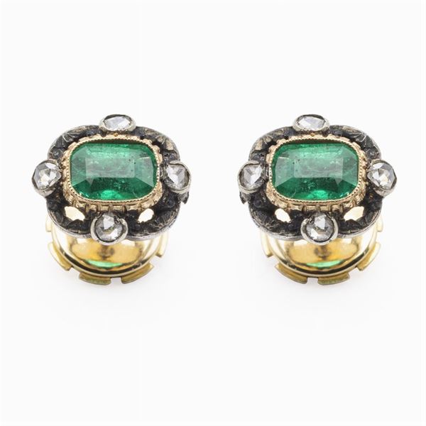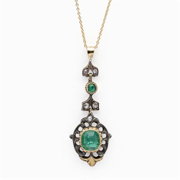 peso 7 gr.impreziositi da smeraldi e rose di diamante, pendente completo di catenina in oro giallo 18kt non coeva, lunghezza 42 cm.