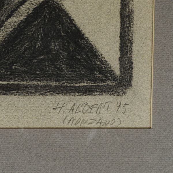 33x47 cm."Haus und Kopf", 1995, carboncino su carta, firmato e datato in basso a destra, entro cornice