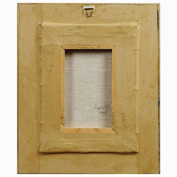 25x18 cm."Ragazzo triste", 2005, olio su tela, firmato e datato sul retro, entro cornice