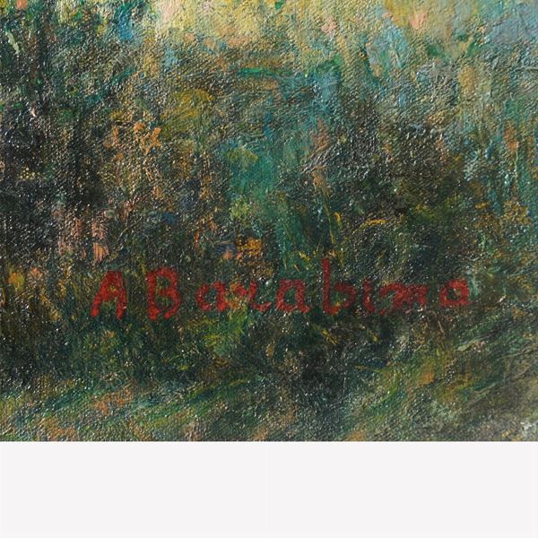 "Estate a Giaveno", olio su tela, firmato in basso a destra, titolato e firmato sul retro, entro cornice