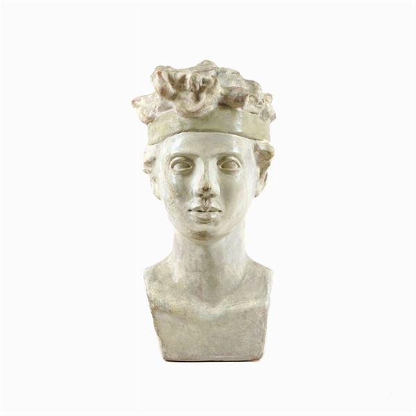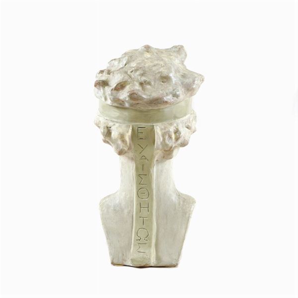 h. 38 cm."Diadumeno", 1991, scultura in terracotta dipinta, firmata