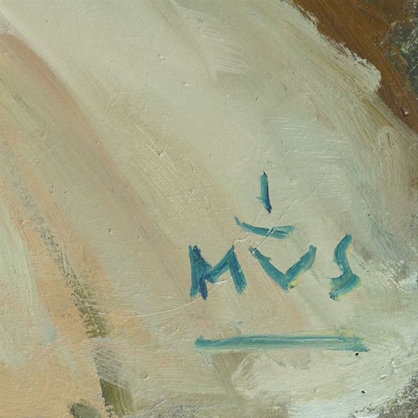100x70 cm."Cabina di Entreves", olio su tavola, firmato in basso a destra, entro cornice