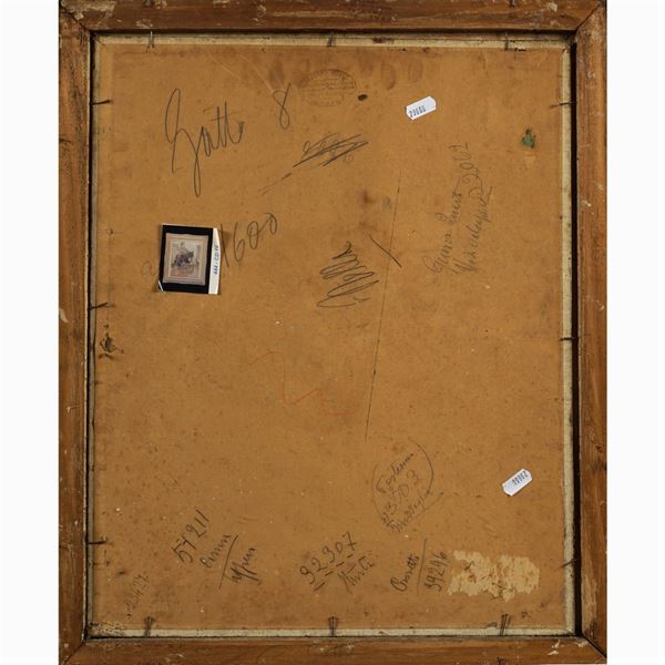 50x40 cm."Gatto sui tetti", olio su cartoncino telato
