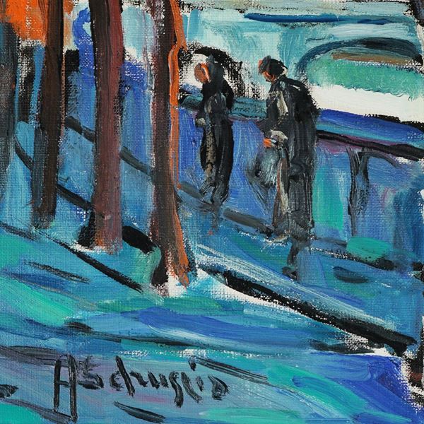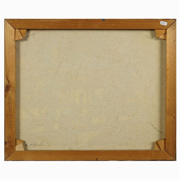 "Lungotevere", olio su tela, firmato in basso a sinistra