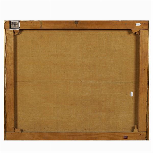 "Paesaggio con figura", 1955, olio su tela firmato e datato in basso a sinistra