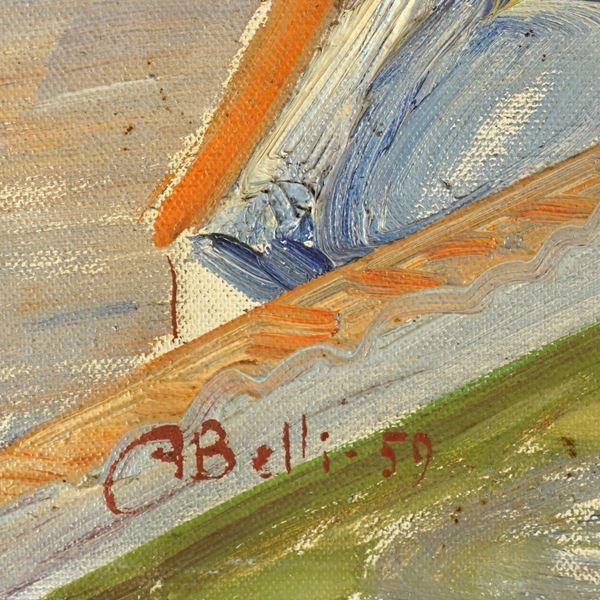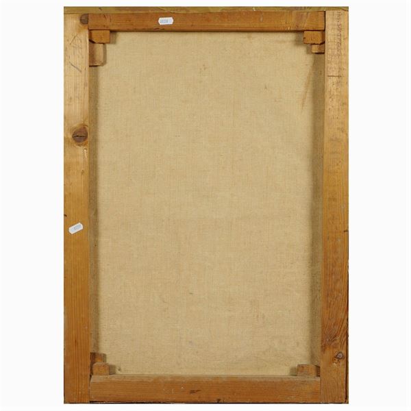 "Veduta di Positano", olio su tela, firmato in basso a sinistra