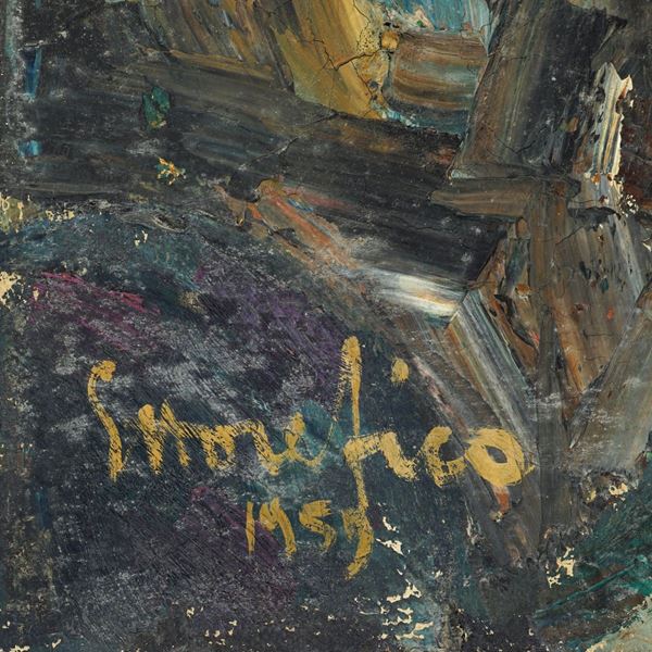 "Paesaggio", olio su tela, firmato in basso a sinistra