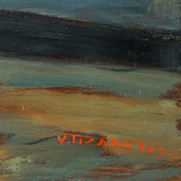 "Sa Scaffa", 1959, olio su masonite, firmato e datato in basso a destra