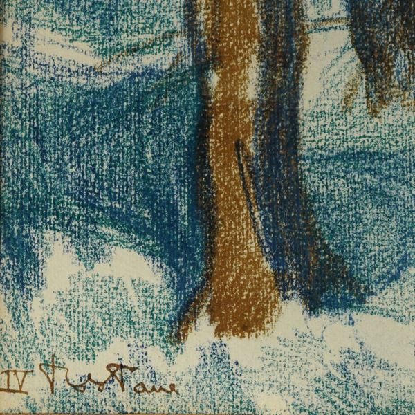 "Paesaggio", pastello su carta, firmato in basso a sinistra