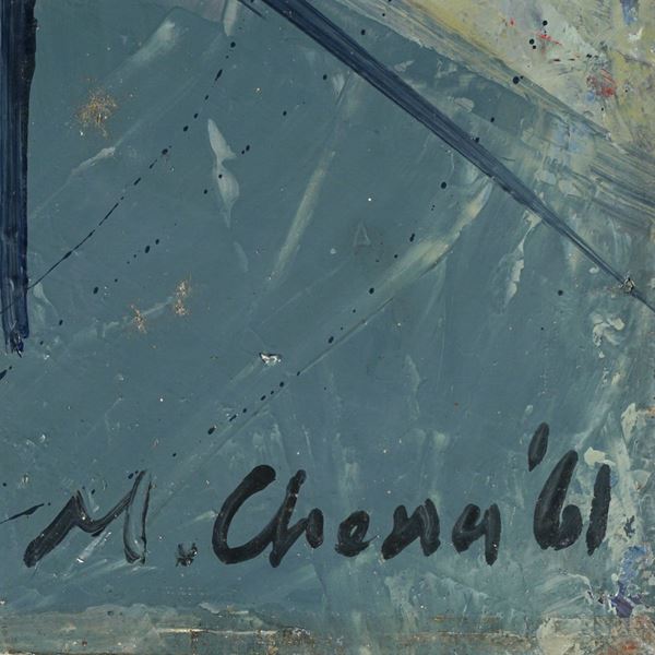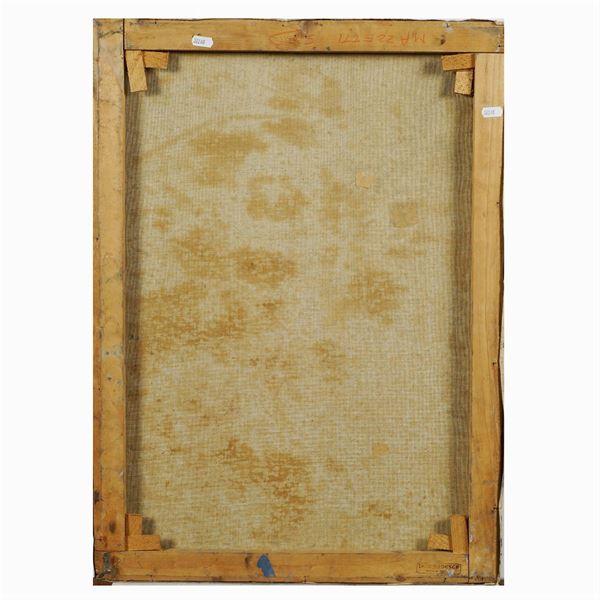 "Interno di fabbrica", olio su tela, firmato in basso destra