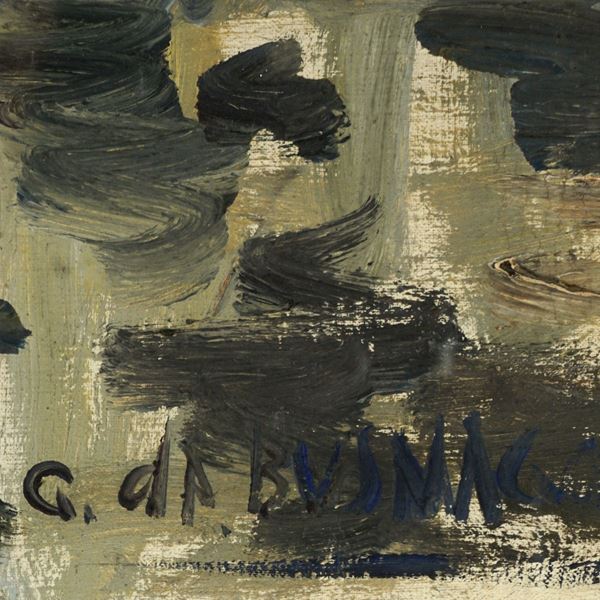 "Canale di barche a Caorle", olio su tela, firmato in basso a destra
