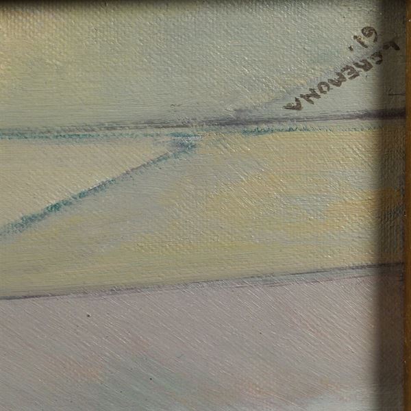 "Centrale termoelettrica di Chivasso", olio su tela, firmato in basso a sinistra