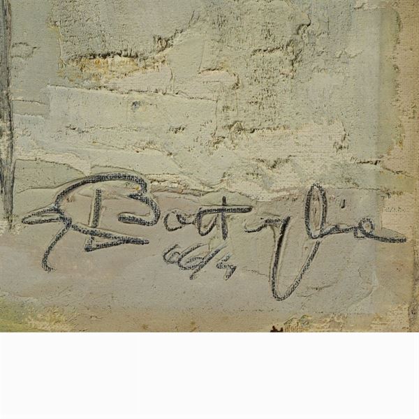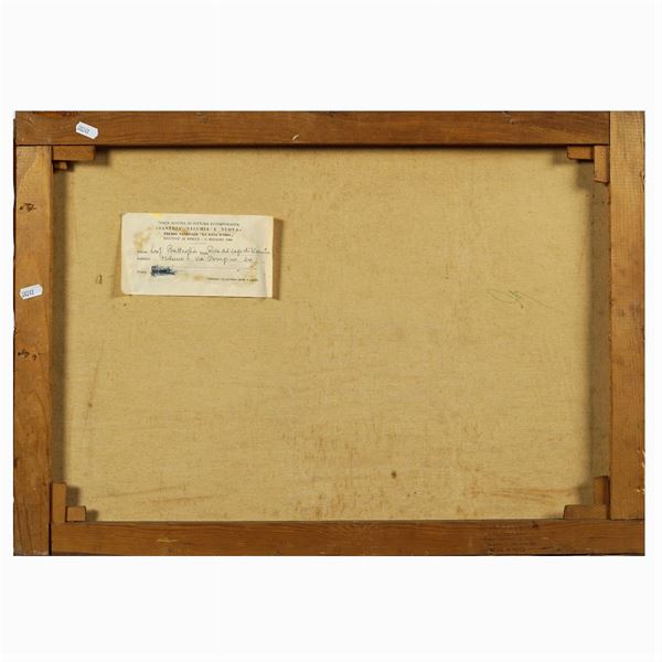 "Veduta di lago", olio su tela, firmato in basso a destra