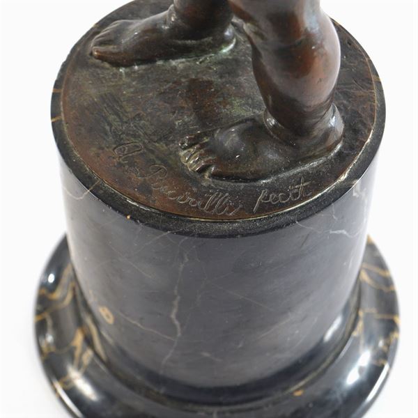 h. 37 cm.scultura in bronzo raffigurante un fanciullo, poggiante su base in marmo, firmata alla base