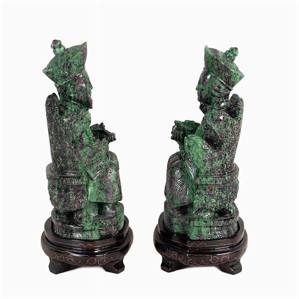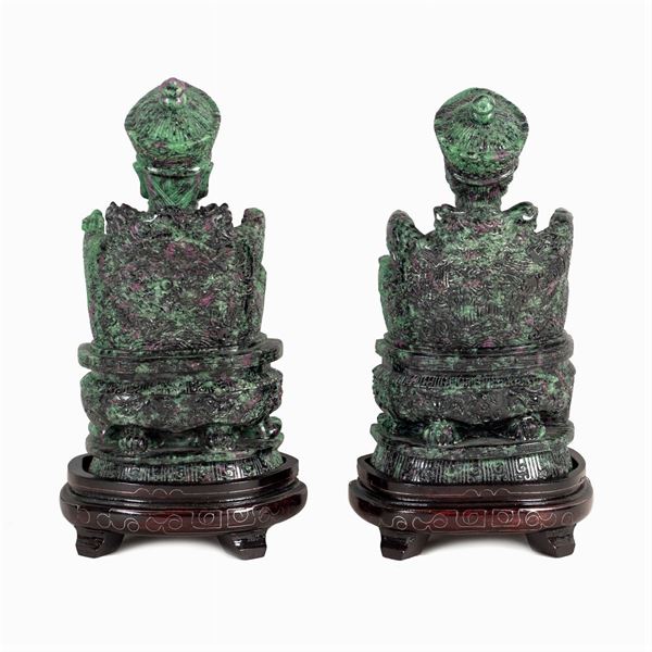 h. 19 cm.scolpiti a raffigurare una coppia di dignitari in trono, basi in legno