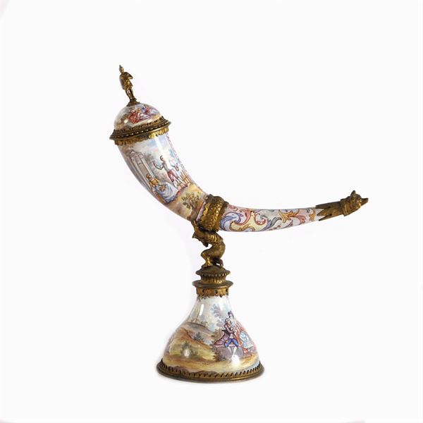 Cornucopia in smalti e bronzo dorato