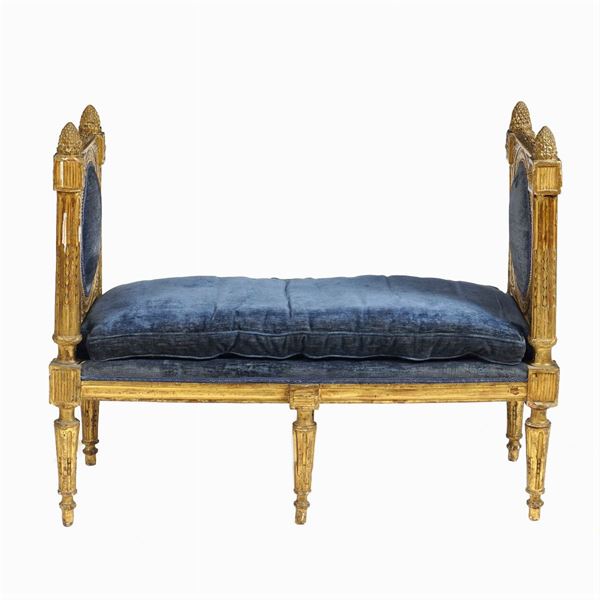 Panchetta Luigi XVI in legno dorato ed intagliato