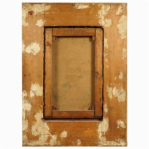 50x32 cm."Ritratto di donna con zuppiera", olio su tela, entro cornice