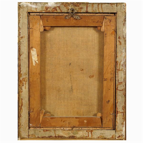 46,5x35 cm."La cacciata di Adamo ed Eva dal Paradiso", olio su tela, entro cornice