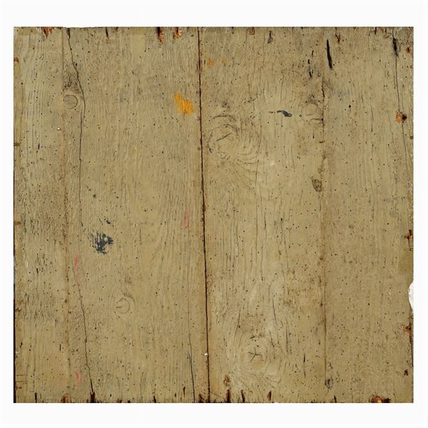 60x63 cm."Madonna con Bambino", olio su tavola, restauri al supporto