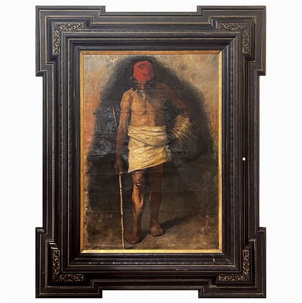 171x120 cm."Pescatore con cesta ", olio su tela, entro cornice