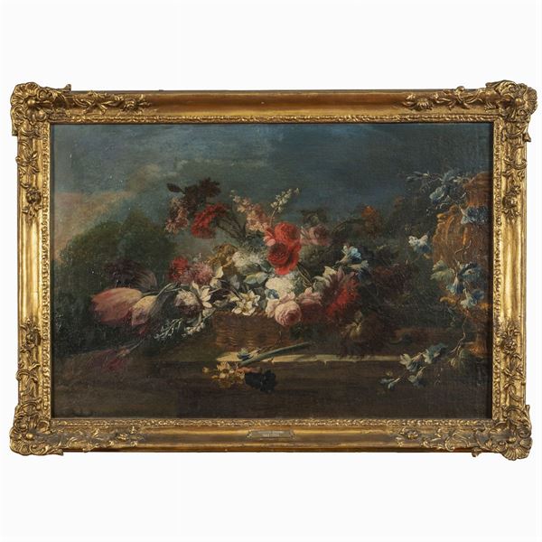 45x66,5 cm."Natura morta di fiori", olio su tela, entro cornice