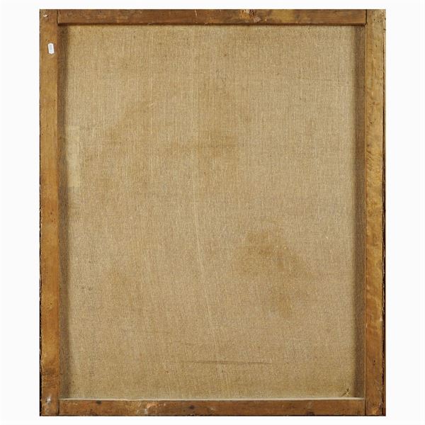 100x81,5 cm."Ritratto di giovane con spada e copricapo rosso", olio su tela, entro cornice
